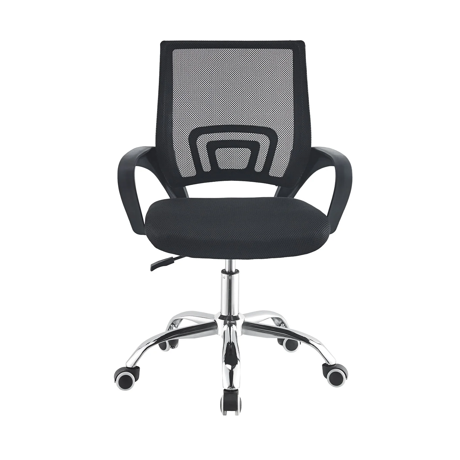 É uma cadeira que é ideal para escritórios, escritórios ou para o seu espaço de trabalho em casa. O design dele é confortável graças à estrutura que tem reforço lombar e repousa braços.Esta é uma cadeira de escrivaninha feita de tecido de nylon preto. Tanto a armação quanto o apoio de braço são feitos de polipropileno e as pernas cromadas têm rodas para fácil movimento.O encosto é feito de tecido de malha para permitir transpiração e possui um sistema de ajuste de altura.É uma cadeira de escrivaninha com a qual você pode estudar ou trabalhar por um longo período de tempo sem más posturas.Instruções de limpeza: use um pano macio ligeiramente umedecido, pré-experimentá-lo em uma área não visível do móvel. Não utilize produtos de amônia, solventes ou abrasivos.Medidas: Largura do assento: 47 cm, Altura para assento: 41,5 cm, Largura total: 59 cm, Profundidade: 47 cm e Altura: 83 cmServido desmontado