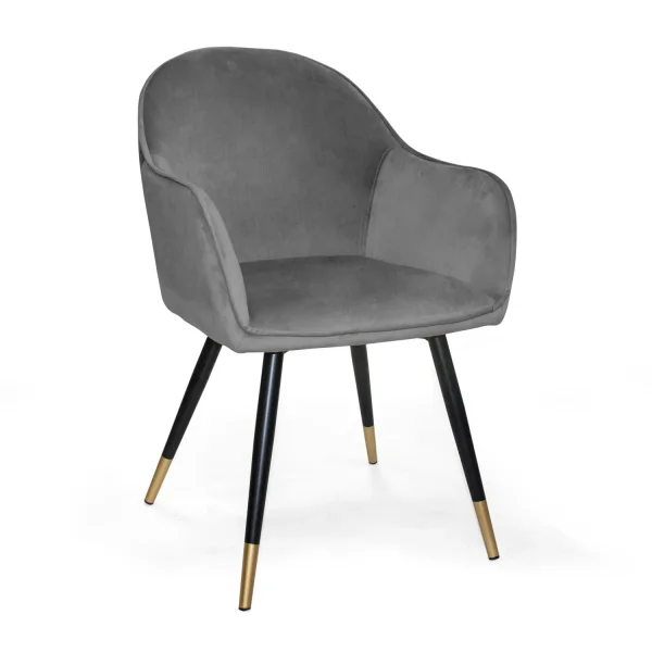 A Poltrona Grayson Veludo Cinza é altamente sofisticada, uma peça ideal para dar um toque original e pessoal para ficar em sua casa, como sala de estar, sala de jantar, quartos ou para estabelecimentos de qualquer tipo. É um produto de última geração que é estofado em veludo cinza e cujo encosto tem um design de linha arredondada. O banco tem uma almofada fixa para deixar sentado confortável, suas quatro pernas são metálicas com acabamento em preto fosco e dourado. Instruções de limpeza: use um pano macio ligeiramente umedecido, pré-experimentá-lo em uma área não visível do móvel. Não utilize produtos de amônia, solventes ou abrasivos. Medidas: Largura: 55 cm, Profundidade: 61 cm, Profundidade do assento: 45 cm, Altura: 85 cm, Altura até o assento: 47 cm, Altura para apoio de braço: 66 cm