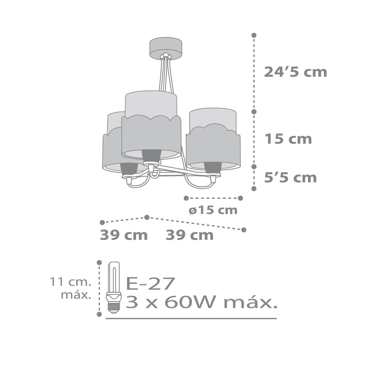 LÂMPADA INFANTIL 3 LUZES LUNARES E27 CINZA