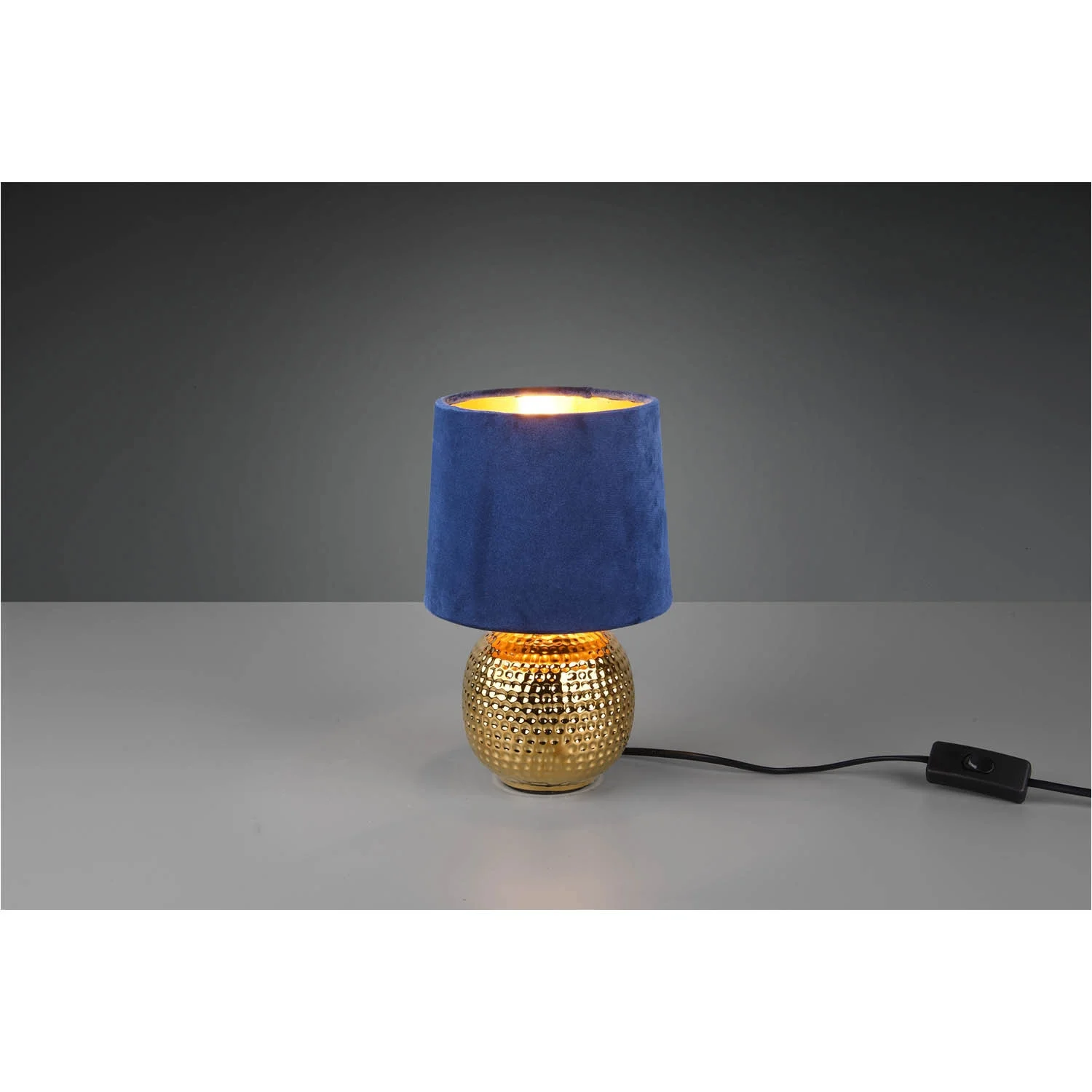 Este é um candeeiro de mesa que lhe oferece um desenho elegante com um toque de cor que vai adorar.A base é feita de cerâmica com um acabamento dourado e a sombra é feita de samt azul, uma espécie de veludo.É ideal para completar a iluminação de qualquer divisão da sua casa, proporcionando-lhe elegância e os acabamentos de última tendência.Funciona com uma lâmpada de casquilho E14 de 40 W no máximo (lâmpada não incluída).Recomendamos a utilização de uma lâmpada LED que não só é mais eficiente como também tem uma longa vida útil.Interruptor de cabo incluído.