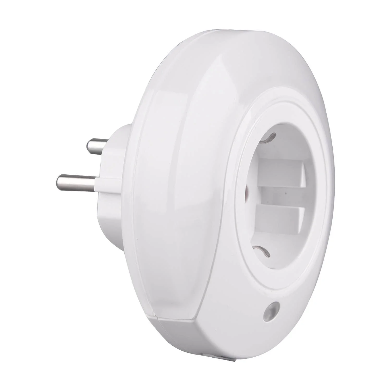 Esta é uma luz nocturna que é automaticamente ligada e desligada pelo sensor de luz integrado (sensor de escuridão). Este produto é feito de plástico branco e tem uma tomada (ficha) incorporada.