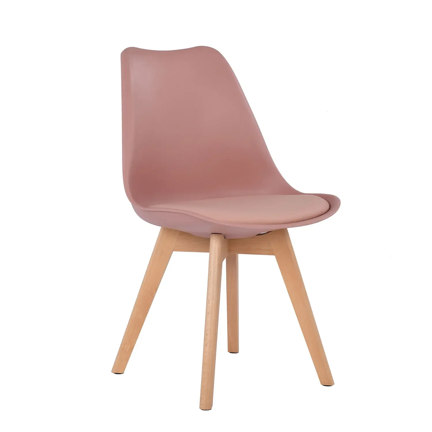 A Cadeira Tower Karlskrona Rosa Nude destaca-se pelo seu design moderno e elegante, ideal para qualquer espaço contemporâneo. O assento em polipropileno é durável e fácil de limpar, enquanto a almofada estofada em polipele oferece um conforto adicional. As pernas de madeira de faia proporcionam uma base robusta e um toque natural que complementa perfeitamente o design do assento.