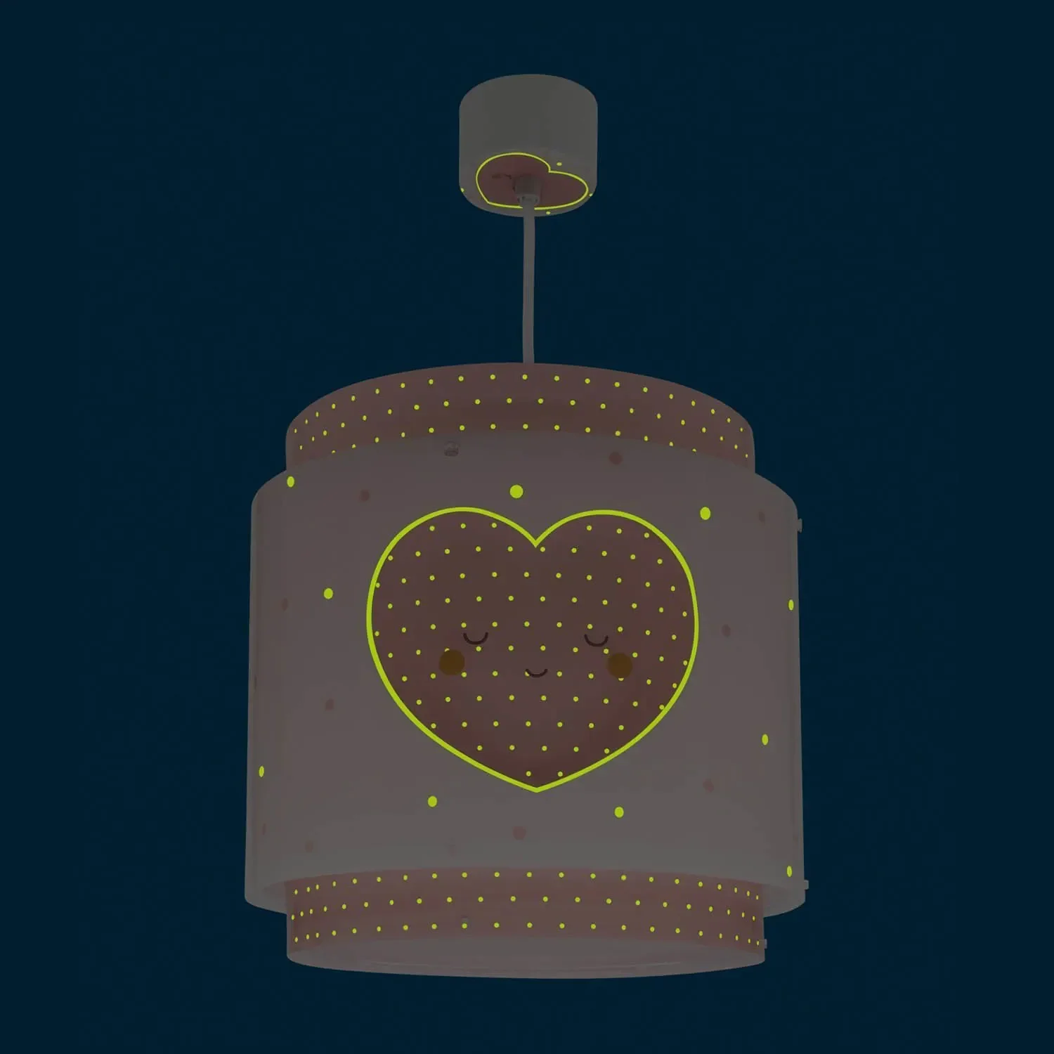 O Candeeiro de Teto Infantil Coração Rosa é ideal para iluminar e decorar o quarto dos mais pequenos com um toque de ternura. Com o seu design doce e os corações rosa que brilham suavemente no escuro, este candeeiro transforma qualquer espaço numa área acolhedora e cheia de encanto.