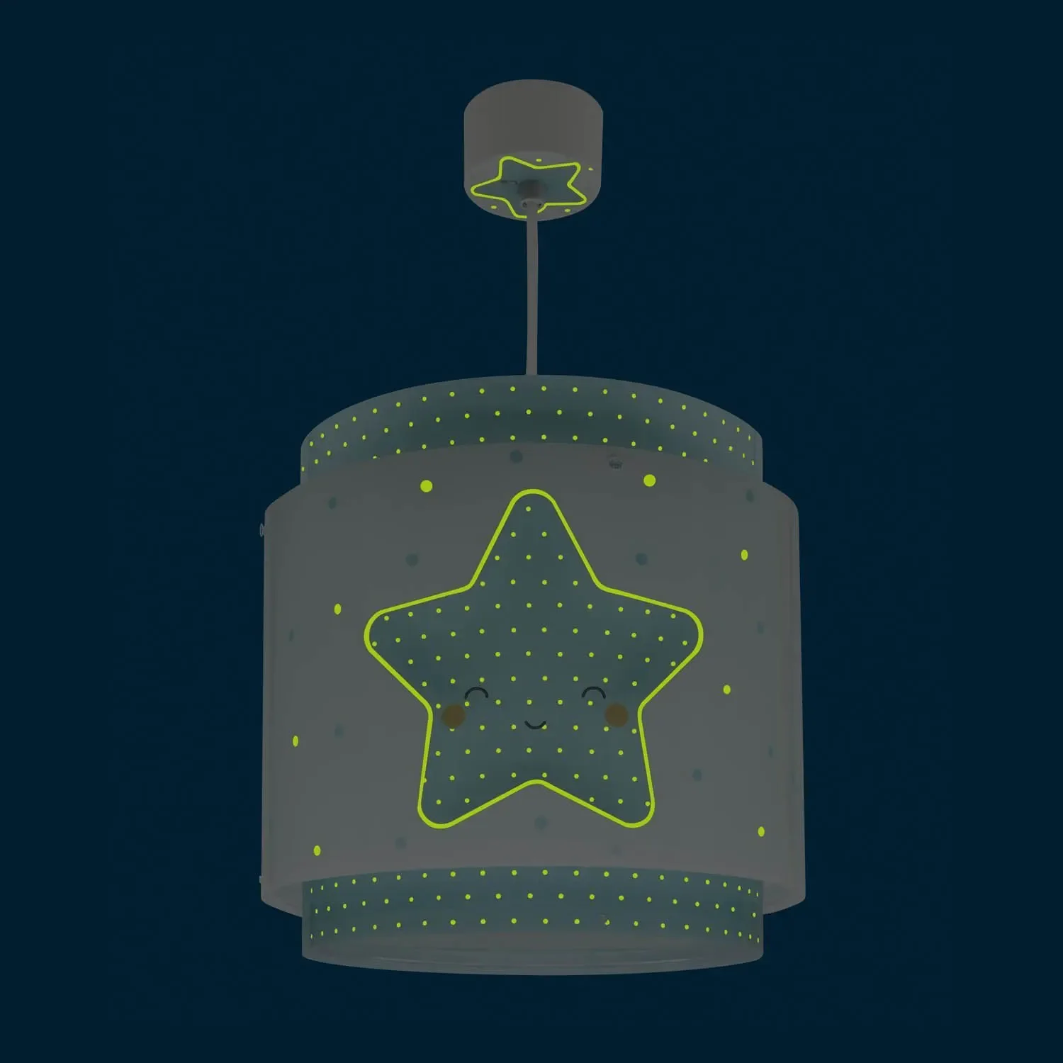 Transforme o quarto dos seus filhos num espaço mágico com a Suspensão Infantil Estrela Azul. Este design encantador não só fornece uma iluminação funcional, mas também atua como uma bela peça decorativa. As estrelas azuis que brilham na escuridão ajudam a criar um ambiente reconfortante, perfeito para as noites de descanso e os sonhos felizes.