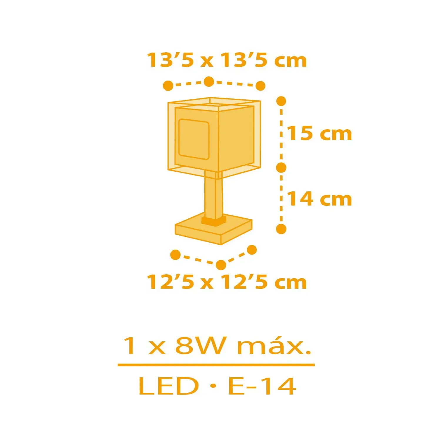 O candeeiro é fácil de usar e pode ser colocado em qualquer mesa ou superfície plana. Para o utilizar, só precisará de instalar uma lâmpada LED E14 (não incluída) e acendê-la através do interruptor para desfrutar de uma luz acolhedora que embelezará o ambiente.