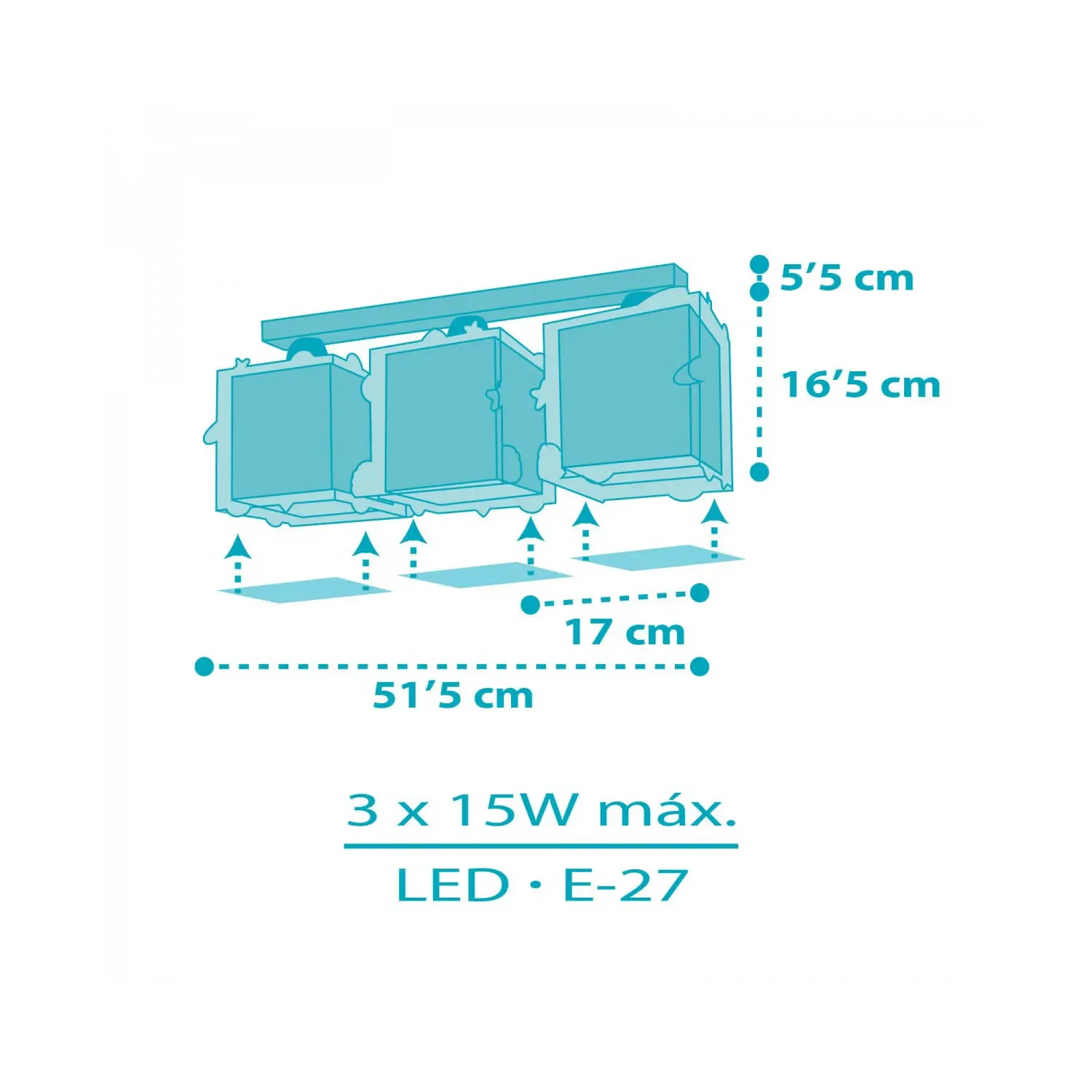 Graças à sua estrutura com três abajures, esta lâmpada proporciona uma iluminação suave e uniforme, perfeita para quartos de grandes dimensões. A funcionalidade e a segurança estão garantidas com seu material de polipropileno e a possibilidade de utilizar lâmpadas LED de baixo consumo. É a opção ideal para pais que procuram qualidade, design atractivo e segurança em um único produto.