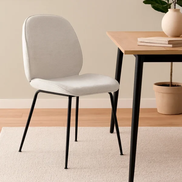 Ideal para quem procura uma cadeira confortável e resistente que se integre facilmente em qualquer ambiente. O tecido robusto e a estrutura metálica garantem durabilidade, e o seu design neutro facilita a combinação com vários estilos de mobiliário.