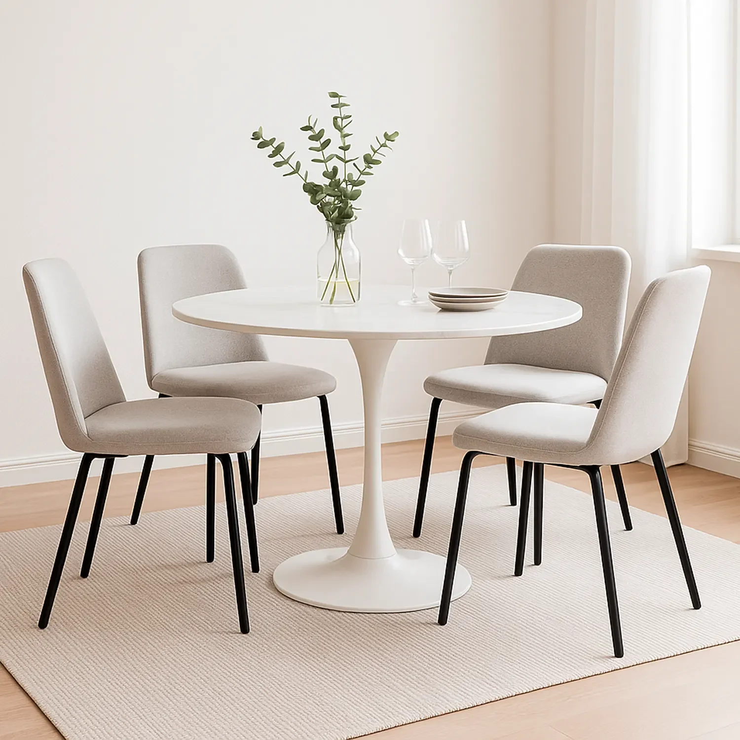 Cadeira de Jantar Estofada Areia Pés Pretos Lustra, a escolha perfeita para ambientes modernos e de estilo nórdico.