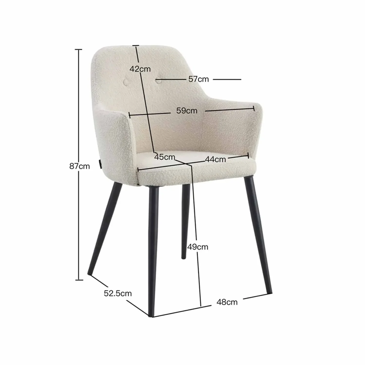 O conforto é um dos seus maiores destaques: o assento almofadado adapta-se ao corpo, enquanto a estrutura sólida assegura durabilidade. O contraste entre o revestimento cinzento-claro e as pernas metálicas pretas cria um efeito visual equilibrado, tornando-a perfeita para salas de jantar, escritórios ou salas de estar contemporâneas.