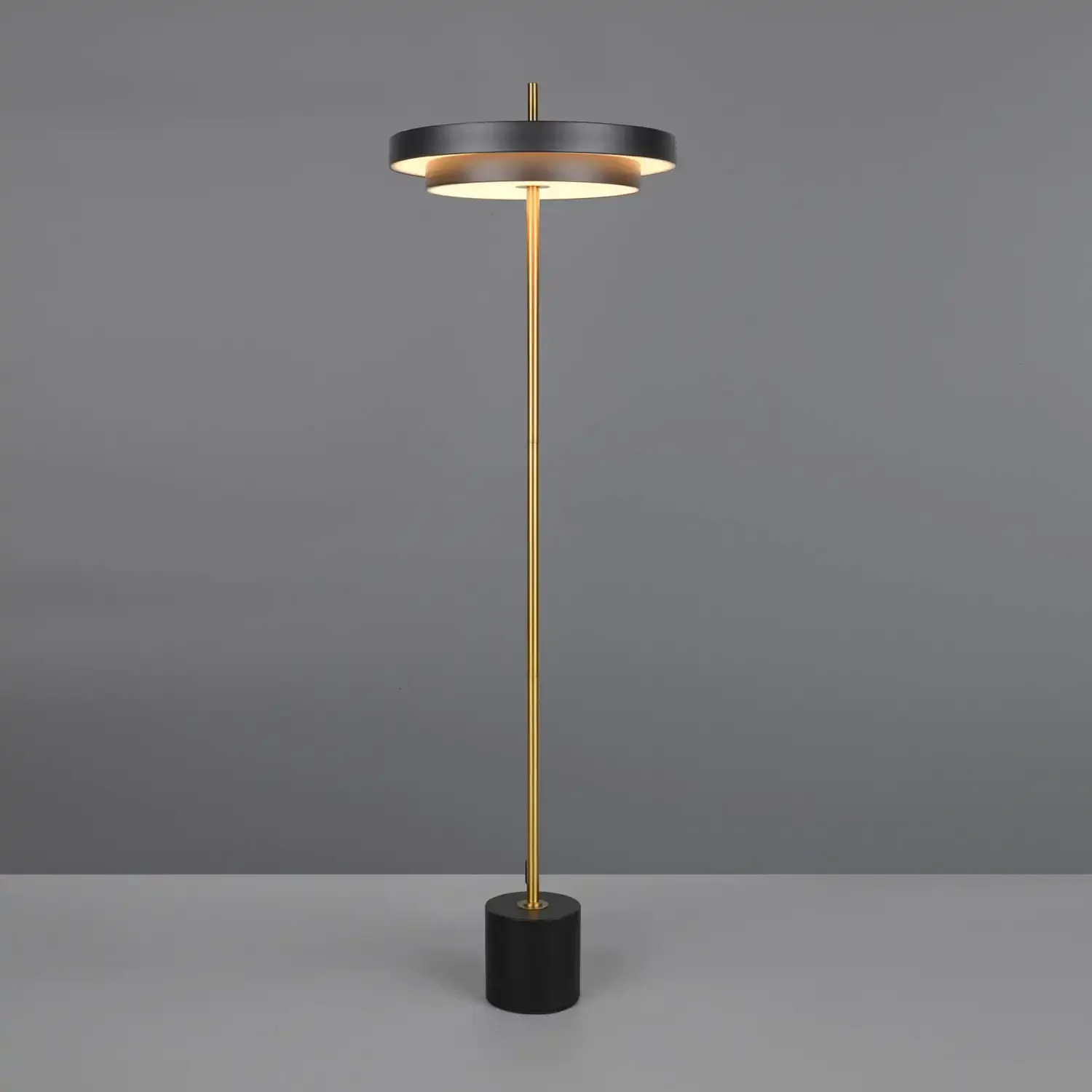 Regule a luz ao seu gosto e transforme o seu espaço com o Candeeiro de Piso LED Elix Preto e Dourado!