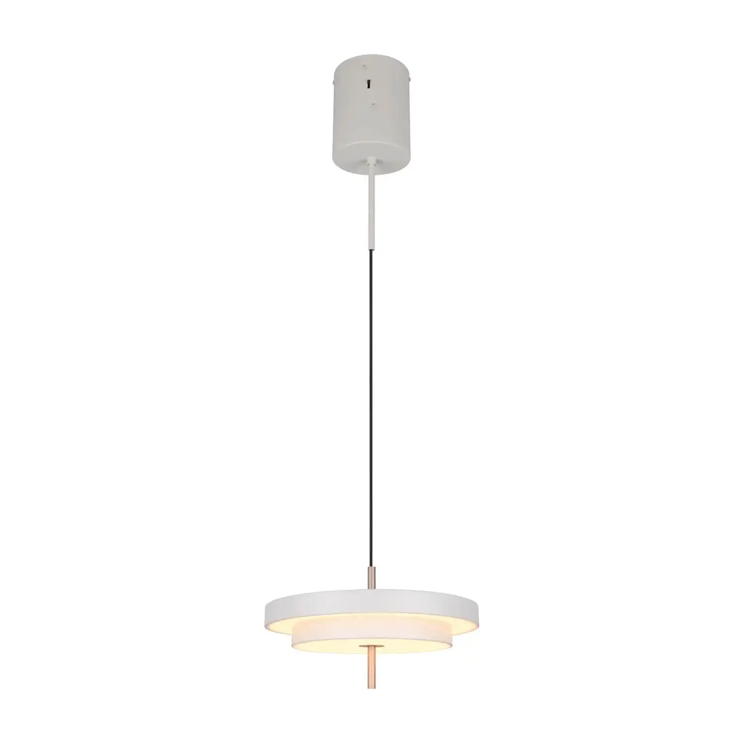 Além disso, esta luminária permite ajustar a temperatura de cor diretamente a partir do aparelho, passando de luz quente (2300K) a neutra (3000K) ou branca (4000K), ideal para adaptar a atmosfera a cada momento. A sua instalação com gancho e altura ajustável (até 150 cm) tornam-na versátil e funcional, garantindo uso cómodo e duradouro com 30 000 horas de vida útil.