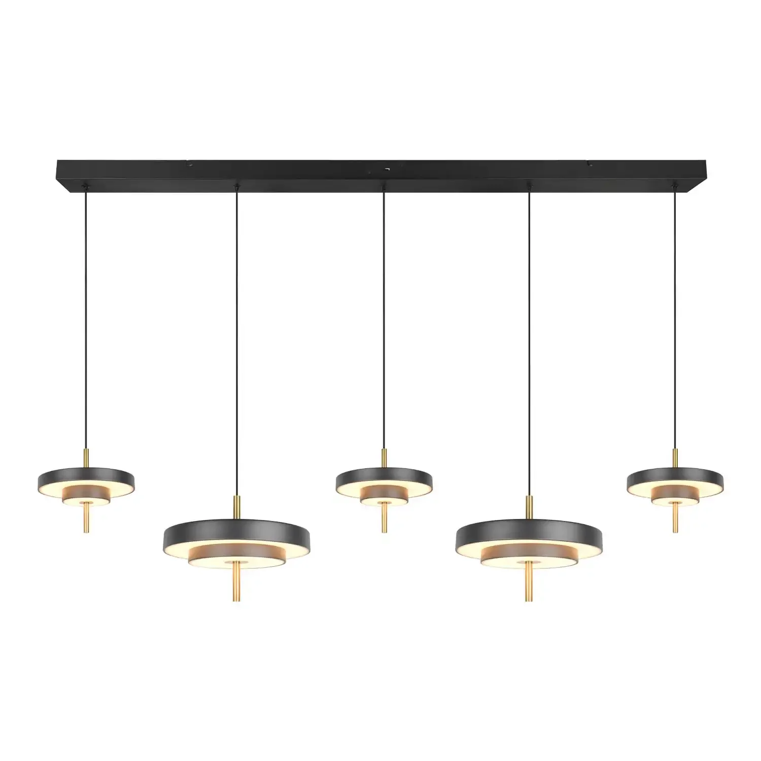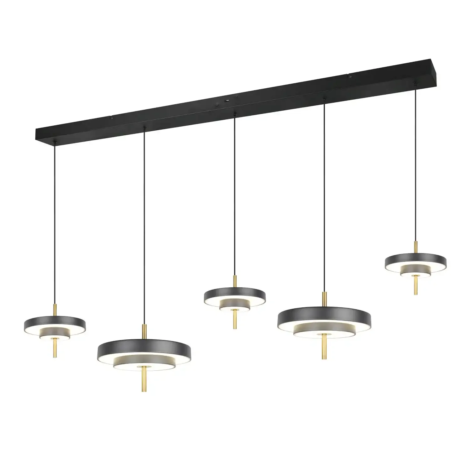 Com uma estrutura metálica de alta qualidade e acabamento elegante negro e dourado, proporciona um estilo moderno e distinto a qualquer espaço interior. O LED SMD integrado fornece 5900 lúmenes, oferecendo iluminação intensa e uniforme para grandes áreas.