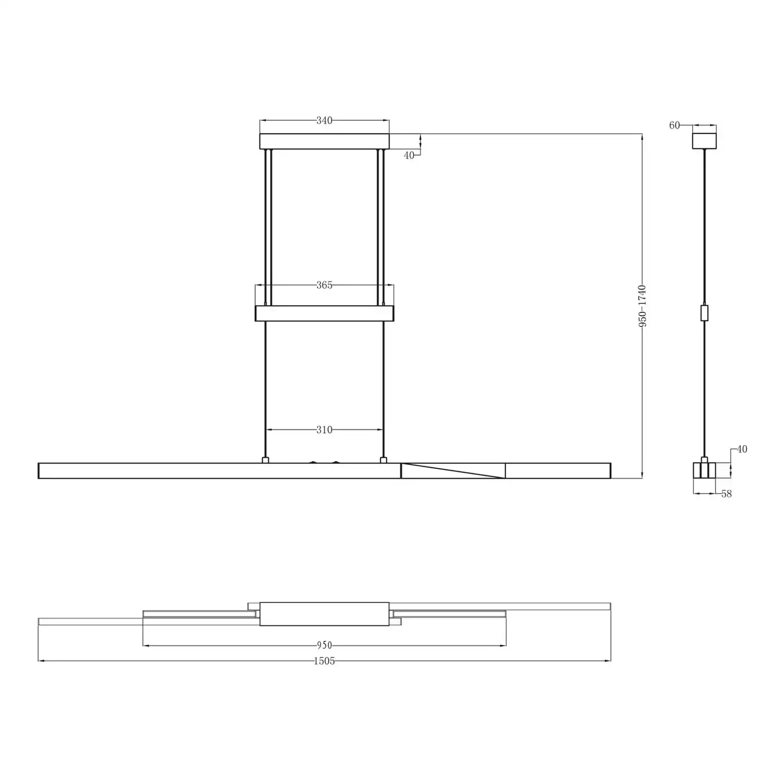 Equipado com função tátil de 4 níveis e altura ajustável (95–150 cm), permite personalizar a luz de forma simples e prática. O design extensível e a luz direcional para cima e para baixo criam um efeito decorativo funcional, ideal para salas, salas de jantar ou áreas de trabalho. A durabilidade de 30 000 h e 15 000 ciclos ON/OFF assegura desempenho confiável e prolongado.