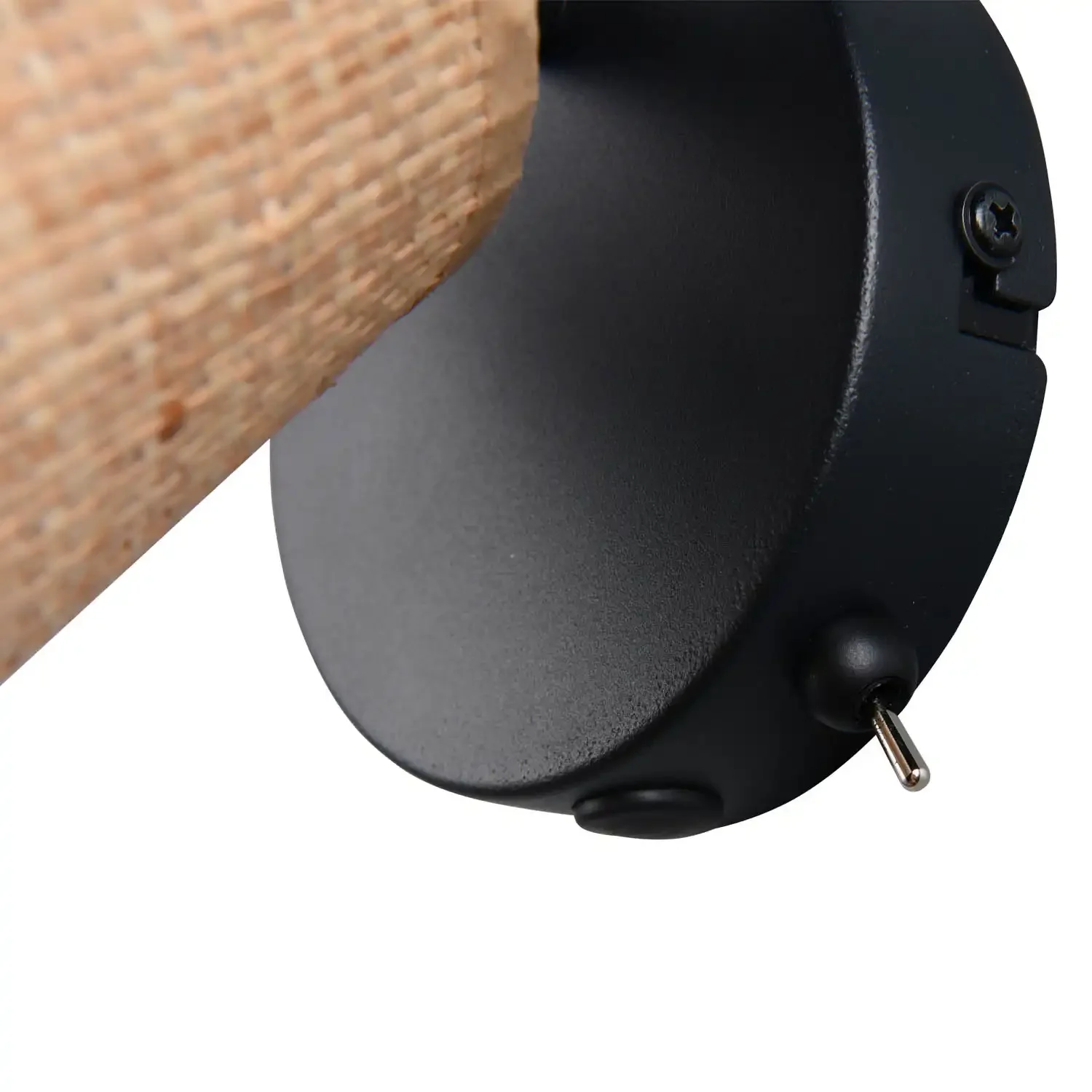 A estrutura metálica em preto mate oferece resistência e um estilo moderno, contrastando harmoniosamente com o acabamento natural do abajur. Ideal para quartos, salas ou corredores, o Foco Teresa difunde uma luz suave que cria ambientes acolhedores e relaxantes.