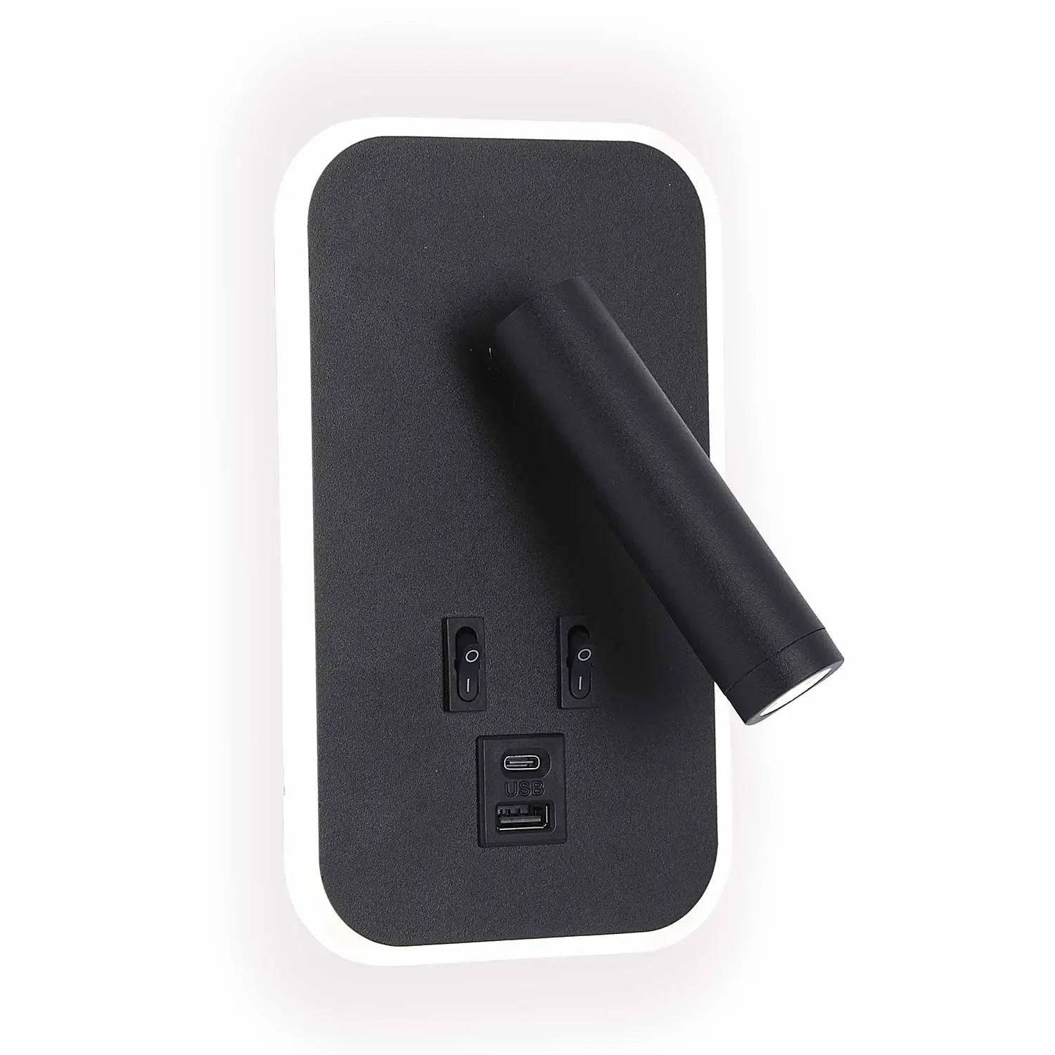 APLIQUE DE PAREDE LED 10W 3000–6000K USB PRETO ORBIA