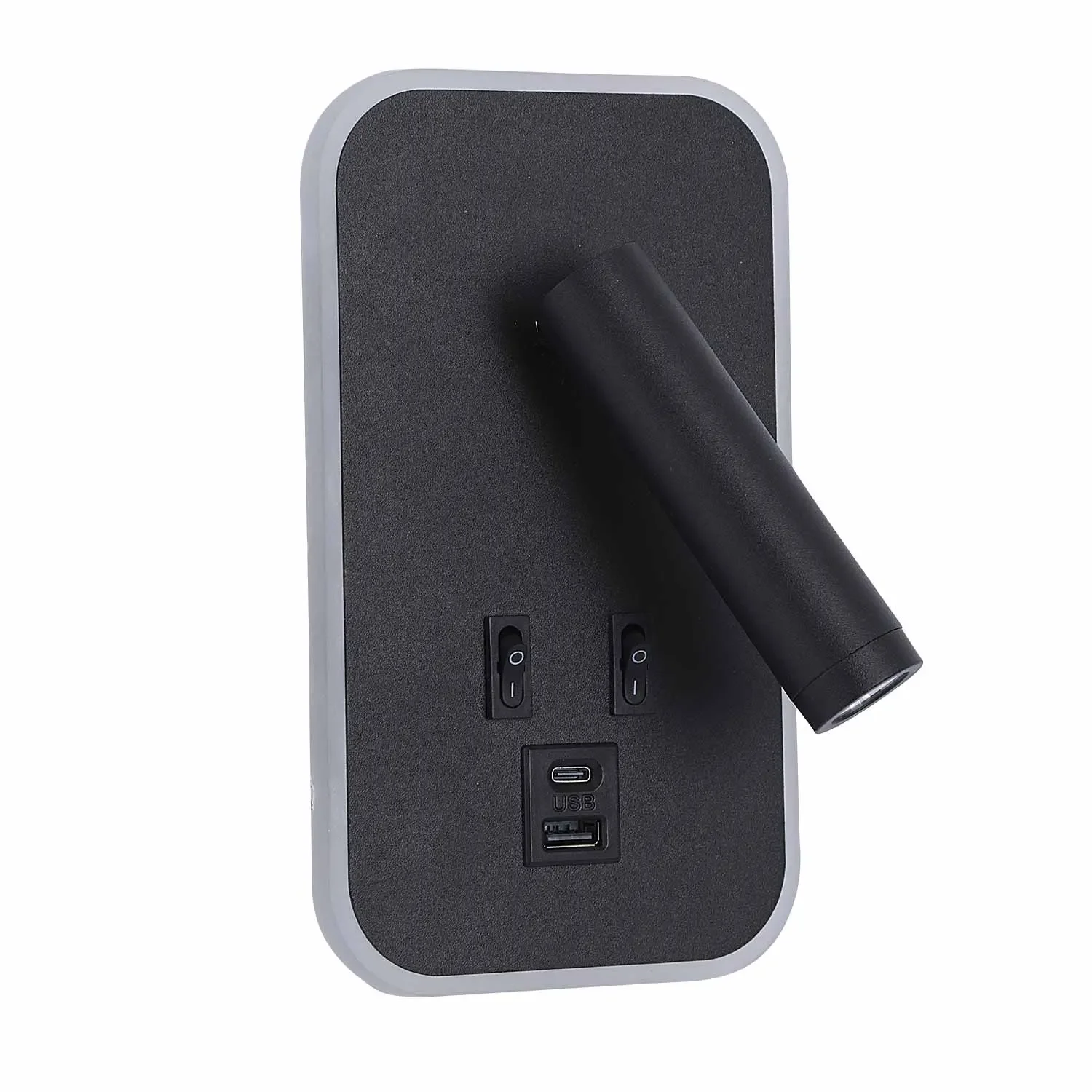 Este aplique LED reúne duas funcionalidades num só produto: iluminação regulável e carregamento de dispositivos. O design compacto poupa espaço, a luz ajustável melhora o conforto visual e a porta USB oferece uma solução prática para o dia a dia, especialmente em quartos e zonas de leitura.