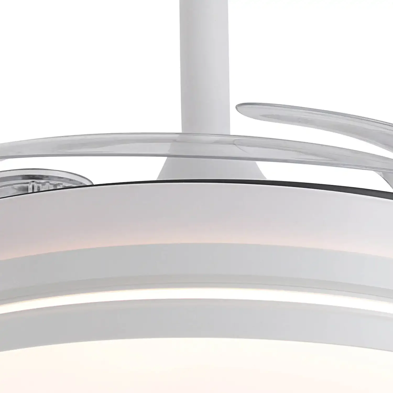 A Ventoinha de Teto LED 40W Regulável Pás Dobráveis Candor destaca-se pelo seu design versátil e discreto em acabamento branco, integrando-se facilmente em qualquer estilo decorativo. As suas 4 pás dobráveis em policarbonato transparente abrem quando a função ventilador é ativada e recolhem quando não está em uso, mantendo uma estética limpa e sofisticada.
