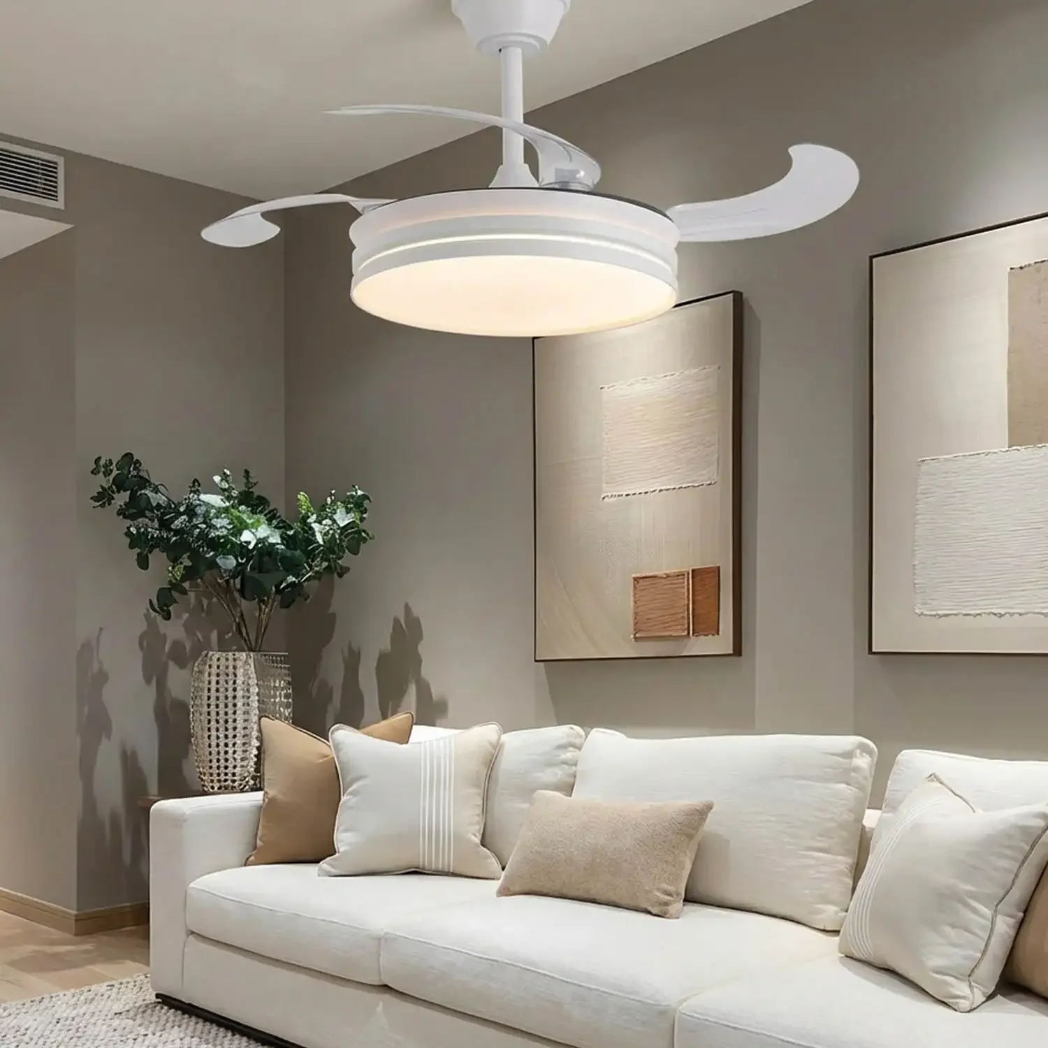 VENTOINHA DE TETO LED 40W REGULÁVEL COM PÁS RETRÁTEIS BRANCO CANDOR