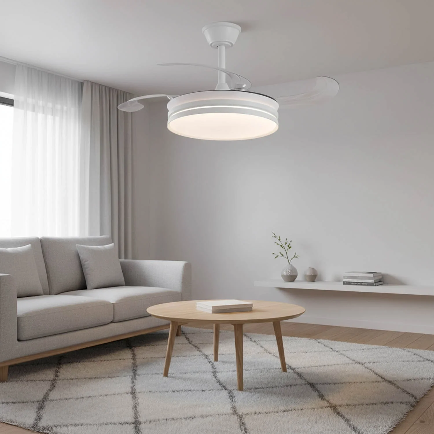 A ventoinha Candor oferece dupla funcionalidade num só produto: iluminação potente e ventilação eficiente. O motor DC reduz o consumo elétrico e o ruído, enquanto o sistema de luz regulável permite adaptar o ambiente conforme cada necessidade. As pás retráteis otimizam o espaço e acrescentam um design inovador e elegante.